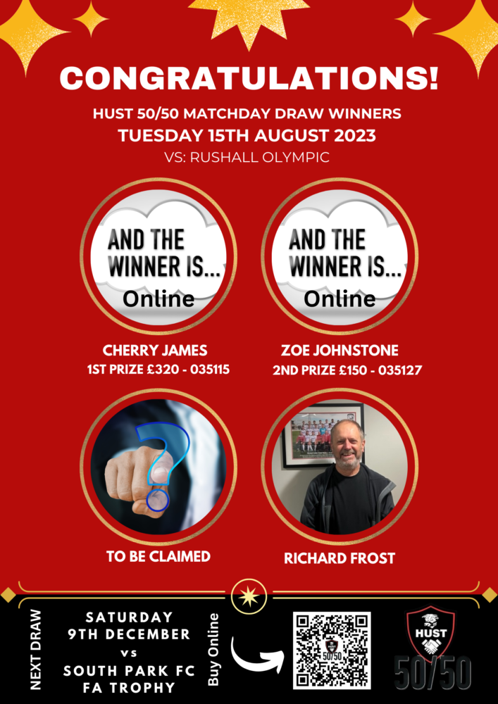 AUGUST WINNERS 2023 Total Prize Money Paid Out This Month: £1935