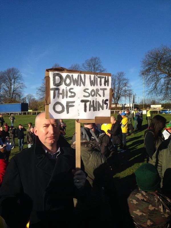 Hitchin’s Top Field site is under threat from developers, with the owners of the site wanting the relocate the club – against it’s wishes – out of town. They have previously held a protest day that attracted over 2,000 supporters. The latest update on their fight is here – https://www.hitchintownfc.co.uk/articles/weekly_articles/20150118265970377184.shtml