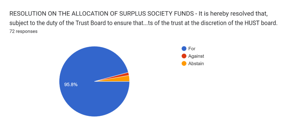 We are pleased to note that all resolutions were approved, and Gerry Harrison has been affirmed as an additional HUST board member.